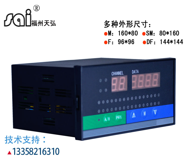 输入8回路通道;统一上、下限报警两个继电器输出;带RS485通讯接口;横表:160×80㎜。