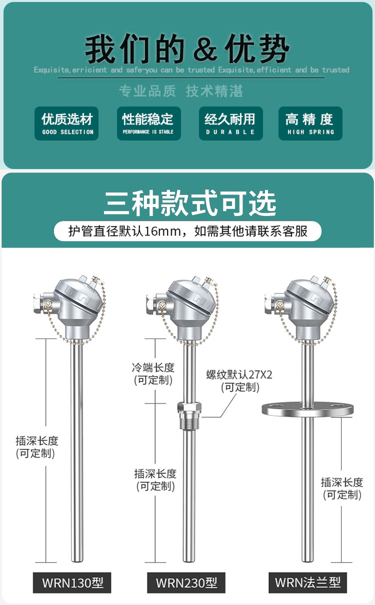 福州天弘自动化设备公司生产的PT100温度传感器采用进口芯片,具有高密度屏蔽,耐高温、耐腐蚀、防油、防水等特点。高精度、性能稳定、使用寿命长等优点。欢迎来电(微信)13358216310沟通。更多产品请关注www.fjthzdh.com主要参数如下:
