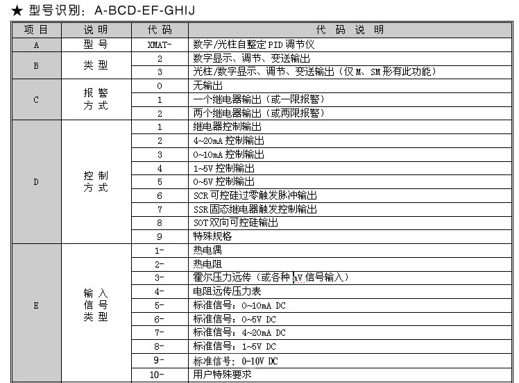 6、输入信号类型:热电偶:B、S、E、K、T、J、R、N等